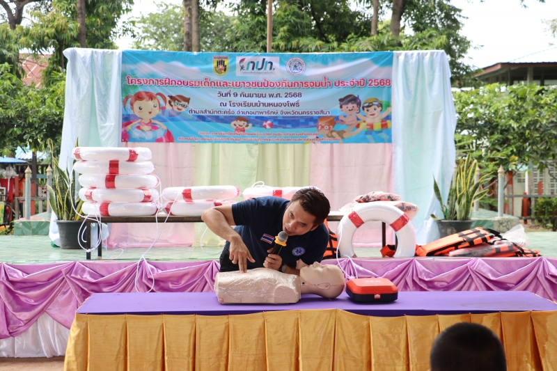 องค์การบริหารส่วนตำบลสำนักตะคร้อ ได้จัดโครงการฝึกอบรมเด็กและเยาวชนป้องกันการจมน้ำ ประจำปี 2568 ในวันที่ 9 กันยายน 2568 ณ โรงเรียนบ้านหนองโพธิ์ อำเภอเทพารักษ์ จังหวัดนครราชสีมา ซึ่งโครงการได้รับการสนับสนุนจากสำนักงานหลักประกันสุขภาพแห่งชาติ (สปสช.) เพื่อป้องกันเด็กจมน้ำในพื้นที่ โดยมีวัตถุประสงค์หลักเพื่อลดอัตราการเสียชีวิตจากการจมน้ำ สามารถช่วยเหลือตนเอง หรือพบเห็นอุบัติเหตุคนจมน้ำแล้วสามารถให้ความช่วยเหลือเบื้องต้นได้อย่างถูกต้อง เหมาะสม ทันท่วงที และสร้างความตระหนักรู้ รวมถึงทักษะในการป้องกันและช่วยเหลือเบื้องต้นแก่เด็ก ผู้ปกครอง และคุณครู