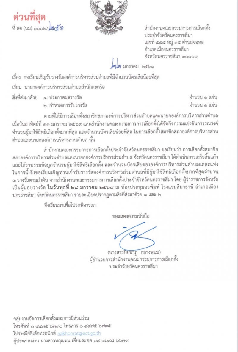 🎉องค์การบริหารส่วนตำบลสำนักตะคร้อ ได้รับรางวัลองค์การบริหารส่วนตำบลที่มีจำนวนบัตรเสียน้อยที่สุด ลำดับที่ 2 🥈