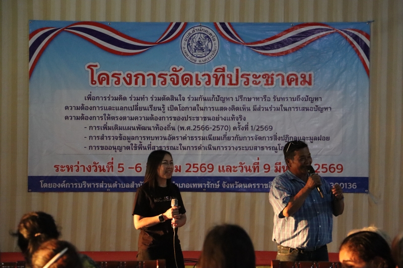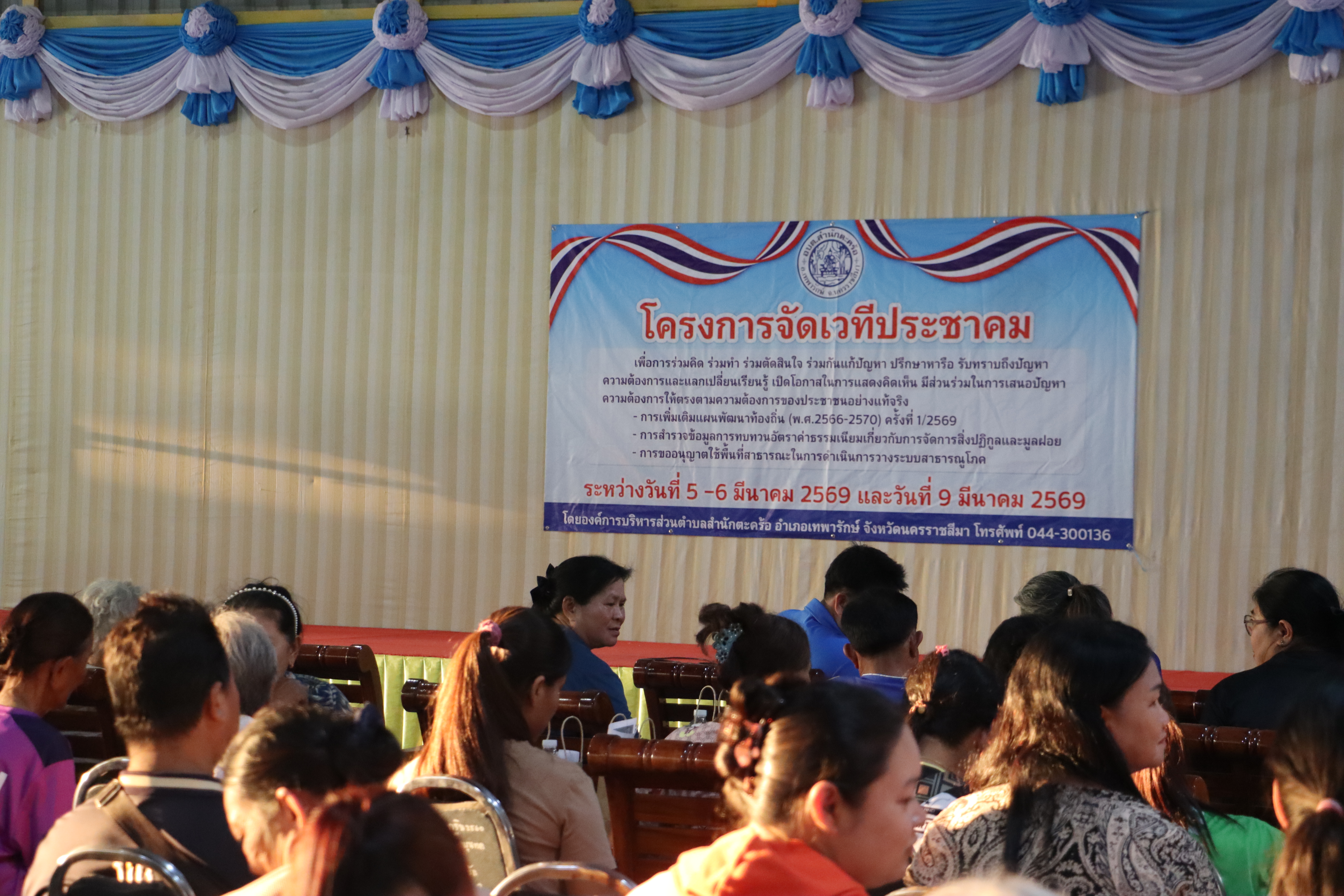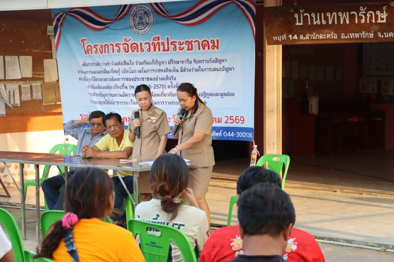 วันจันทร์ ที่ 9 มีนาคม 2569 ณ ศาลาประชาคมบ้านเทพารักษ์ และศาลาประชาคมบ้านทำนบเทวดา ตำบลสำนักตะคร้อ อำเภอเทพารักษ์ จังหวัดนครราชสีมา