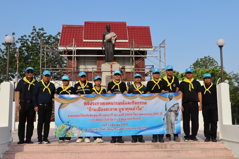 🗓13 มีนาคม 2569 ⏰️เวลา 08:00 น 📢นายชาญชัย ศรีวิพัฒน์ นายกองค์การบริหารส่วนตำบลสำนักตะคร้อ พร้อมด้วยผู้บริหาร สมาชิกสภาฯ ข้าราชการ และพนักงานองค์การบริหารส่วนตำบลสำนักตะคร้อ เข้าร่วมพิธีประกาศเจตนารมณ์และกิจกรรม "บ้านเมืองสะอาด บูชาคุณย่าโม" เพื่อเฉลิมฉลองครบรอบ ๒๐๐ ปี วีรกรรมท่านท้าวสุรนารีและร่วมขับเคลื่อนวาระพัฒนาจังหวัด "1+11 Agenda Korat" วาระ ๘ โคราช จังหวัดสะอาด และร่วมกิจกรรมทำความสะอาด ปรับปรุงภูมิทัศน์บริเวณลานอนุสาวรีย์ และบริเวณศูนย์ราชการอำเภอเทพารักษ์