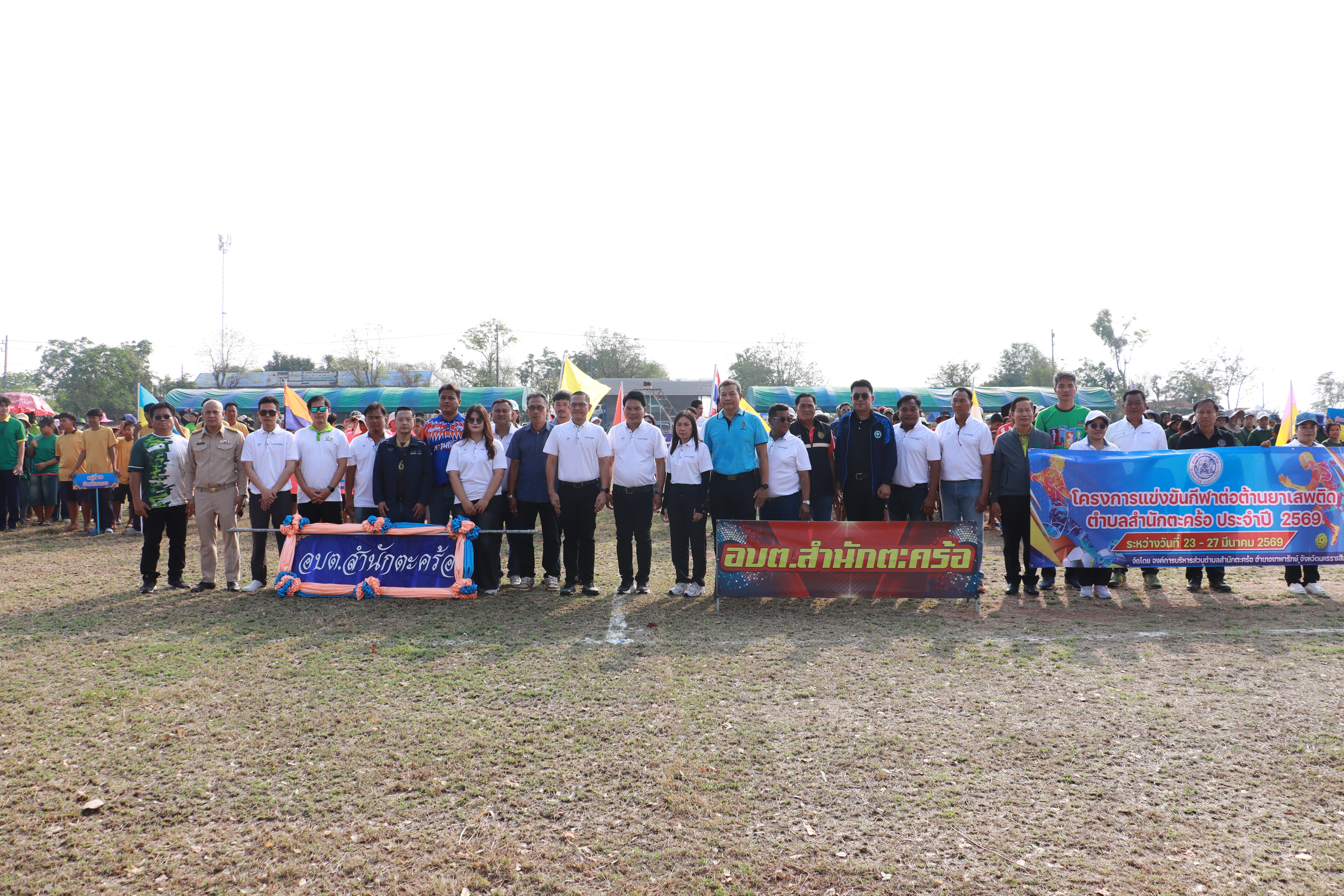 องค์การบริหารส่วนตำบลสำนักตะคร้อ ดำเนินการจัดโครงการแข่งขันกีฬาต่อต้านยาเสพติด ประจำปี 2569 ตั้งแต่วันที่ 23-27 มีนาคม 2569 ณ สนามกีฬาอำเภอเทพารักษ์ จังหวัดนครราชสีมา โดยได้รับเกียรติจาก นายสุนา วงษ์ละคร นายอำเภอเทพารักษ์ เป็นประธานในการเปิดโครงการดังกล่าวและขอขอบคุณทุกหน่วยงาน ทุกท่านที่ให้เกียรติมาร่วมโครงการในครั้งนี้ ซึ่งวัตถุประสงค์ของโครงการคือ เพื่อส่งเสริมให้เด็ก เยาวชน และประชาชน ได้มีการออกกำลังกาย การเล่นกีฬา และเพื่อเสริมสร้างทักษะทางการกีฬา ได้ใช้เวลาว่างให้เกิดประโยชน์ มีสุขภาพร่างกายแข็งแรง และห่างไกลจากยาเสพติด