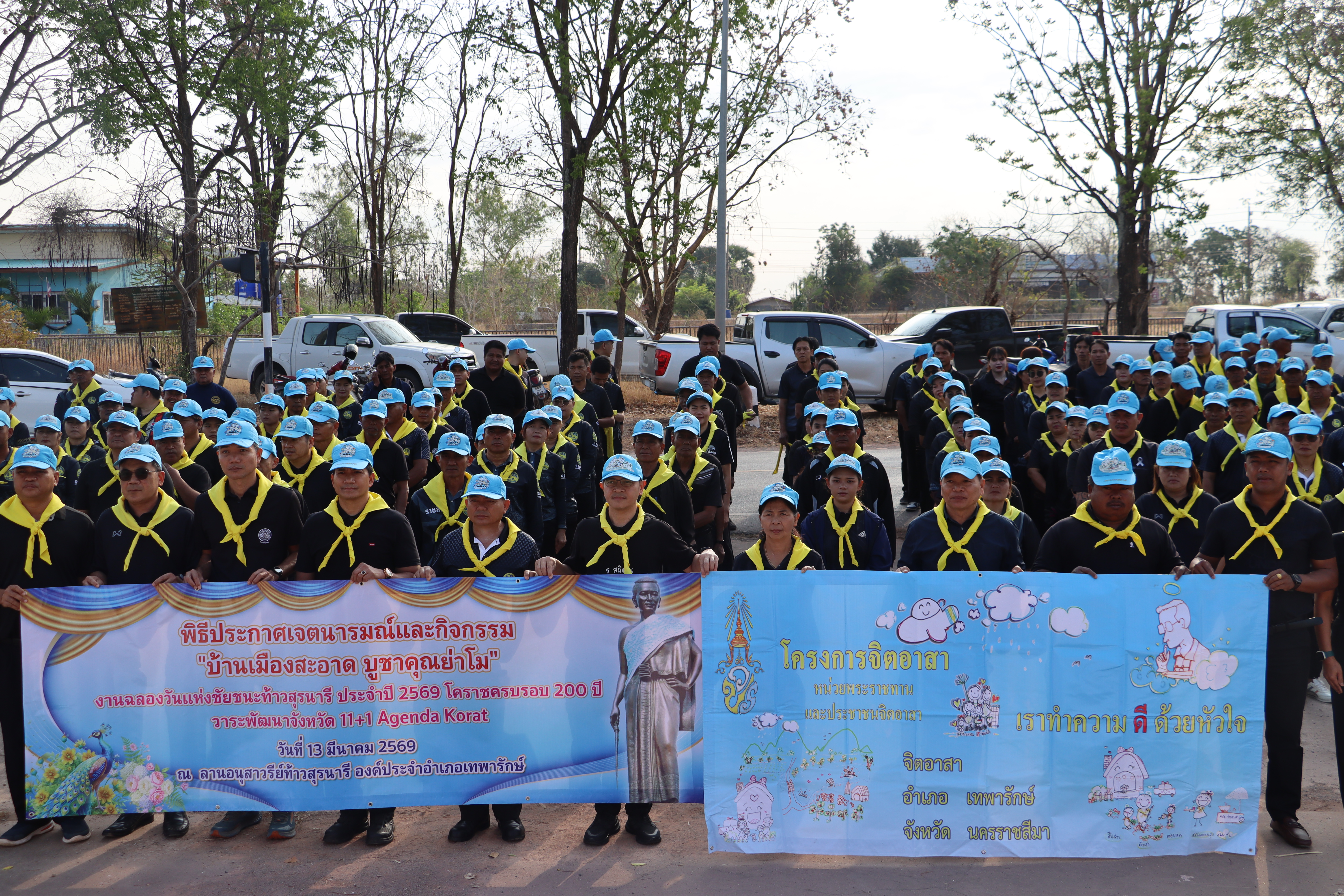 🗓13 มีนาคม 2569 ⏰️เวลา 08:00 น 📢นายชาญชัย ศรีวิพัฒน์ นายกองค์การบริหารส่วนตำบลสำนักตะคร้อ พร้อมด้วยผู้บริหาร สมาชิกสภาฯ ข้าราชการ และพนักงานองค์การบริหารส่วนตำบลสำนักตะคร้อ เข้าร่วมพิธีประกาศเจตนารมณ์และกิจกรรม "บ้านเมืองสะอาด บูชาคุณย่าโม" เพื่อเฉลิมฉลองครบรอบ ๒๐๐ ปี วีรกรรมท่านท้าวสุรนารีและร่วมขับเคลื่อนวาระพัฒนาจังหวัด "1+11 Agenda Korat" วาระ ๘ โคราช จังหวัดสะอาด และร่วมกิจกรรมทำความสะอาด ปรับปรุงภูมิทัศน์บริเวณลานอนุสาวรีย์ และบริเวณศูนย์ราชการอำเภอเทพารักษ์