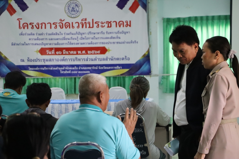 วันที่ 16 มีนาคม 2569 องค์การบริหารส่วนตำบลสำนักตะคร้อ ดำเนินการประชุมคณะกรรมการพัฒนาองค์การบริหารส่วนตำบลสำนักตะคร้อ (ประชาคมระดับตำบล) ในการร่วมคิด ร่วมตัดสินใจ ร่วมกันแก้ปัญหา ปรึกษาหารือ รับทราบถึงปัญหาความต้องการและแลกเปลี่ยนเรียนรู้ เปิดโอกาสในการแสดงความคิดเห็น มีส่วนร่วมในการเสนอปัญหาความต้องการให้ตรงตามความต้องการของประชาชนอย่างแท้จริง โดยมีระเบียบวาระเบื้องต้นดังนี้